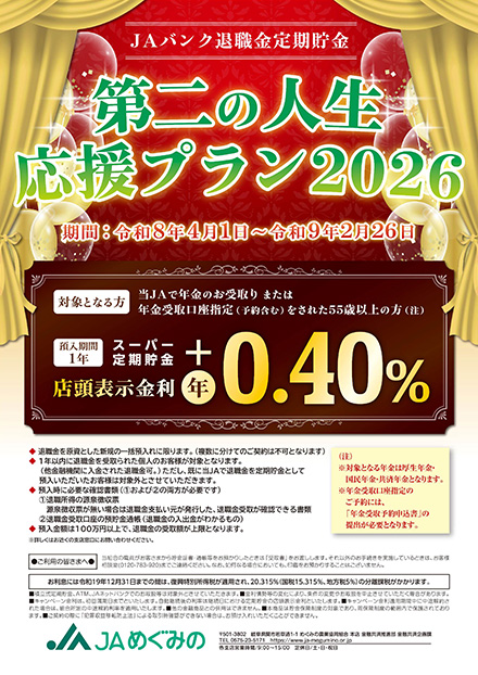 JAめぐみので公的年金のお受取りをご指定いただいた方にはご成約プレゼントをお届けします。