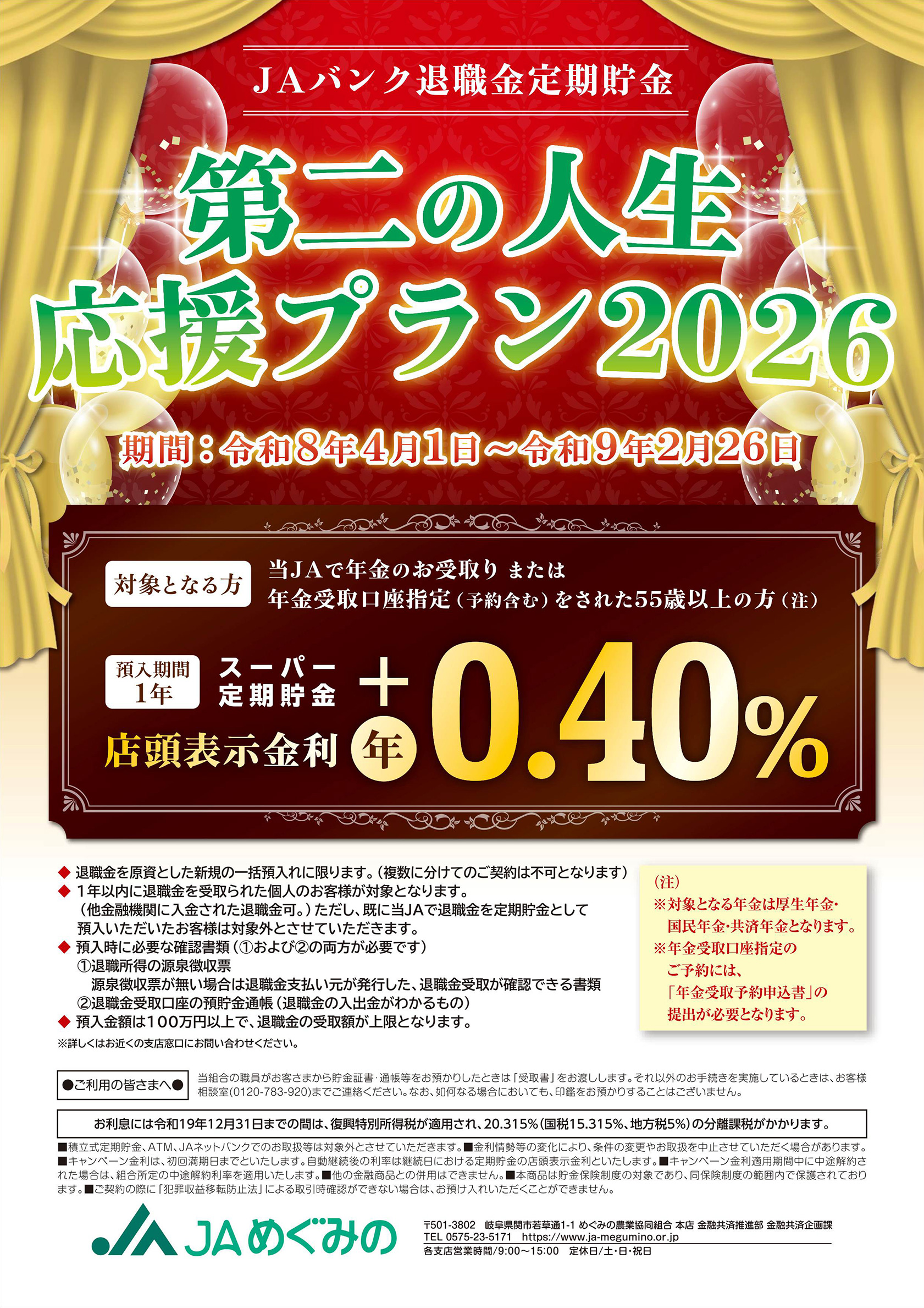 「JAめぐみの」に年金受取口座をご指定いただける方をご紹介ください!