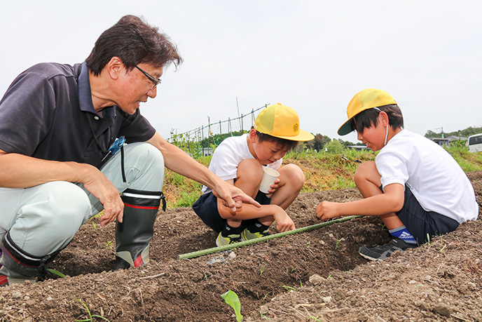 JAでは、食農教育活動の一環として自給率の低い大豆に着目し、栽培、収穫、加工を通じて「食」のあり方や、「農」の大切さを見直すことを目的とした「まめなかな運動」に取り組んでいます。「まめなかな」とは、岐阜県の方言の「お元気ですか」という意味と大豆の「まめ」と掛けています。